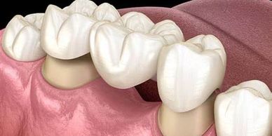 A bridge is one option to replacing a missing tooth. A dental bridge is a false tooth (called a pontic) that is held in place by the adjacent teeth on either side of the gap. This is a custom lab-made porcelain bridge that is permanently cemented on for optimal functioning. Another option for replacing missing teeth is an implant!